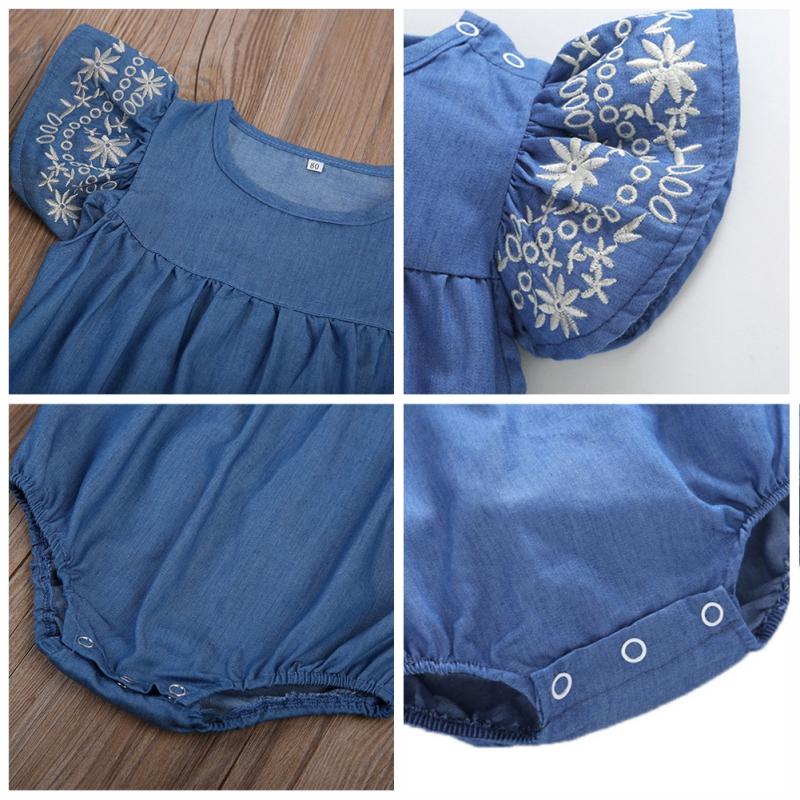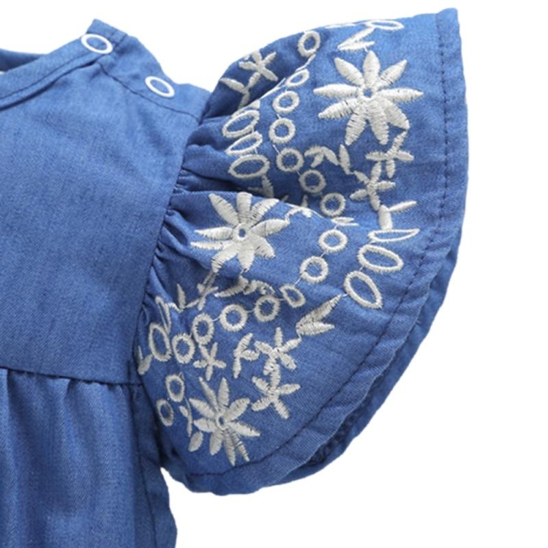 Body Jeans Manga Bordada - Tamanhos de 3 meses a 3 anos