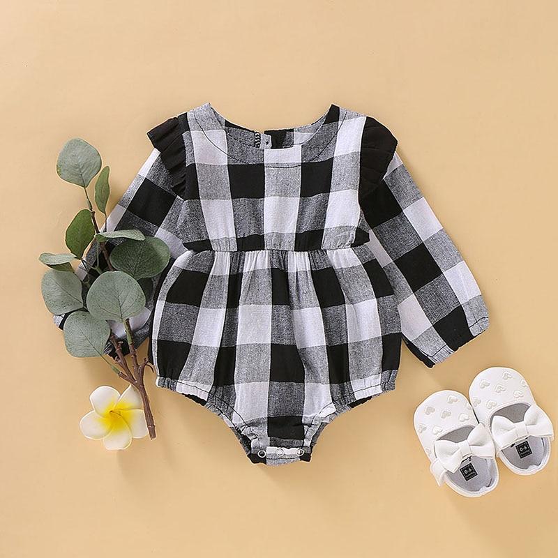Body Xadrez Manga Longa - Tamanhos de 0 a 18 meses