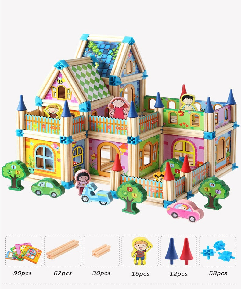 As peças de madeira com encaixes permitem criar um cenário de uma linda casa, com arvores, carros, pessoas, animais e com todas essas peças as crianças podem deixar a imaginação fluir, criando inúmeras possibilidades para cada personagem.