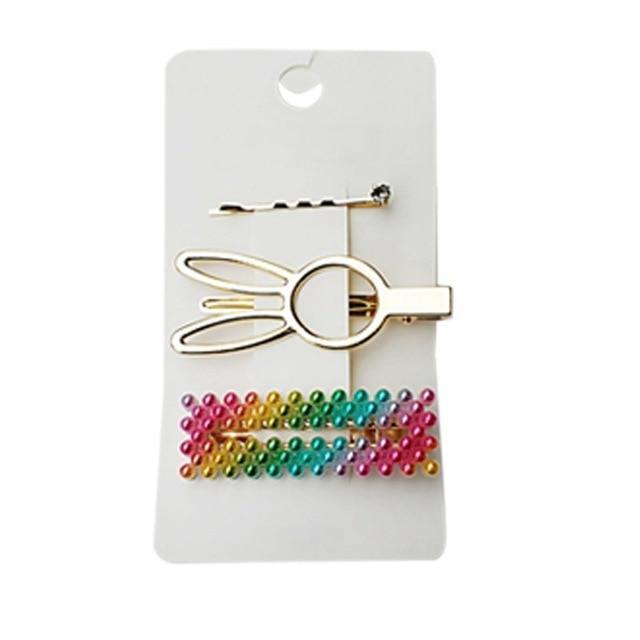 Conjunto 3 Grampos de Cabelo Metal e Pérolas