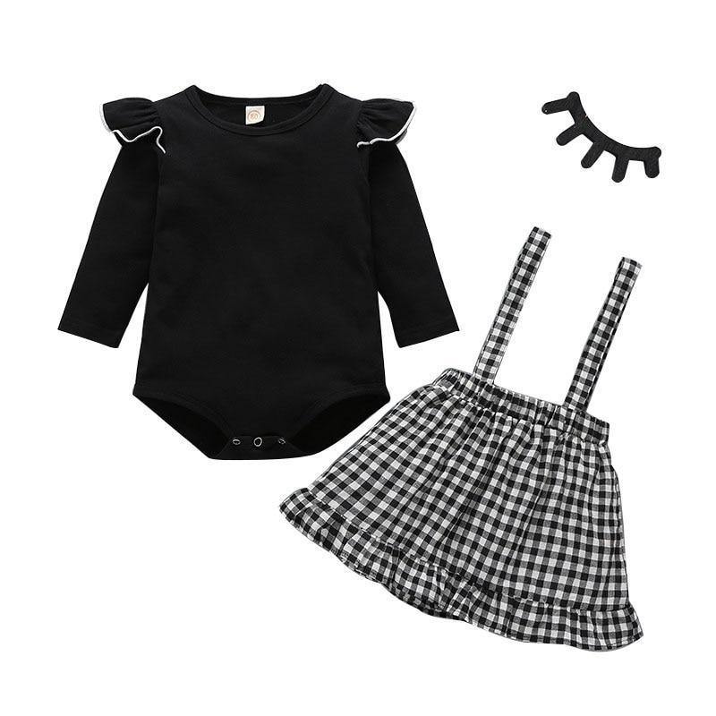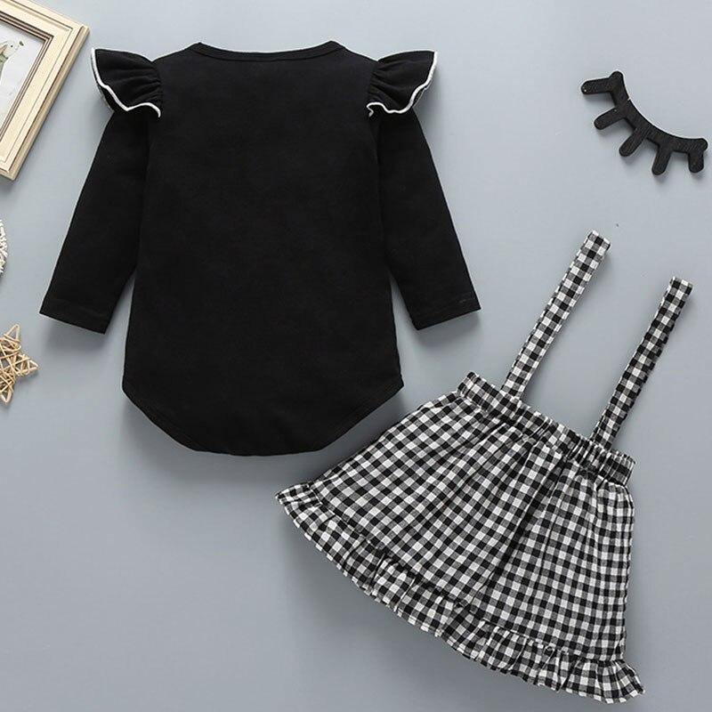 Conjunto Body e Saia Xadrez com Alça - Tamanhos de 0 a 3 anos