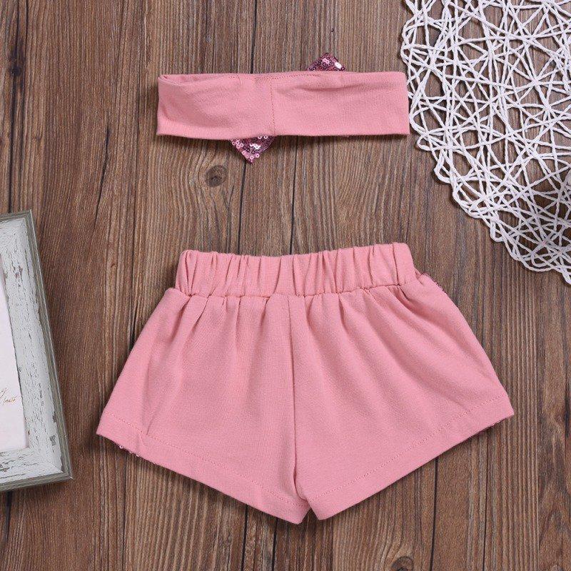 Conjunto Paetês Shorts + Faixa  - Tamanhos 0 a 2 anos