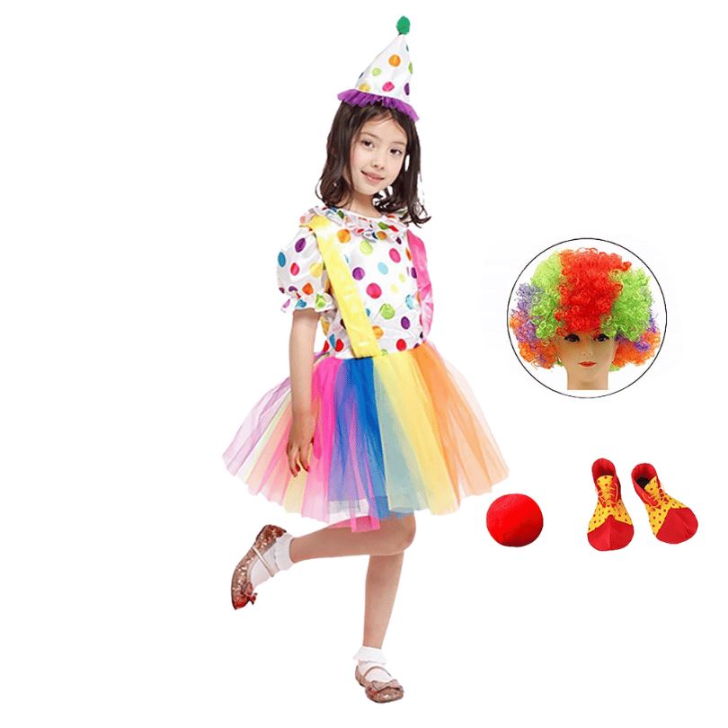 Fantasia Palhaço Branca com Saia Infantil Menina + Acessórios