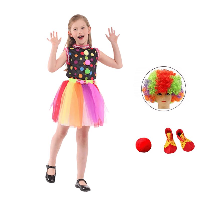 Fantasia Palhaço preta com bolinhas e Saia Infantil Menina + Acessórios