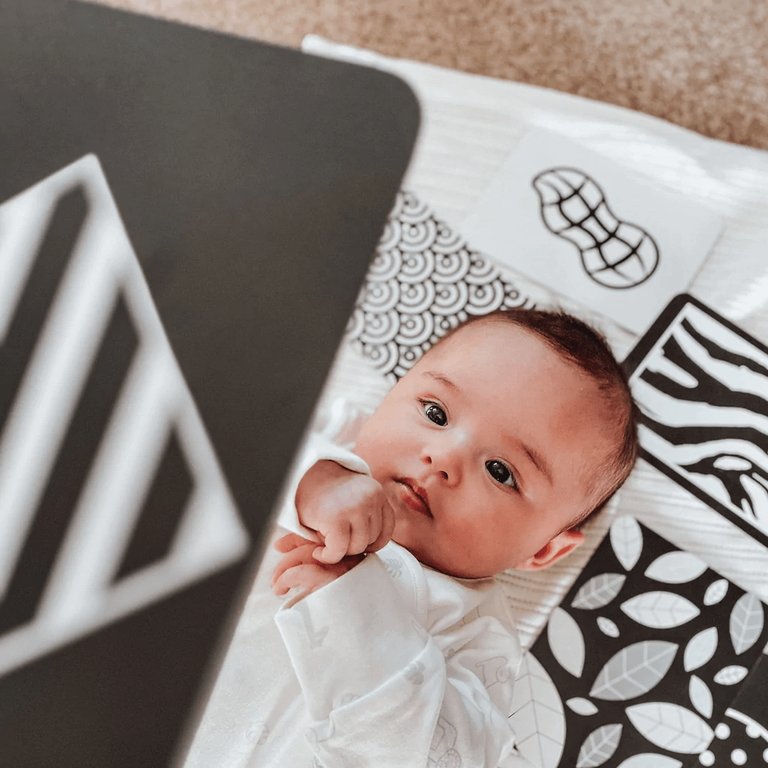 O kit inclui uma série de flashcards coloridos e em preto e branco, com imagens de alto contraste e padrões variados para promover o rastreamento visual, o desenvolvimento cognitivo, a percepção estérea e o despertar artístico. Cada cartão é uma oportunidade para o bebê explorar novas formas, padrões e cores, criando conexões neurais essenciais.