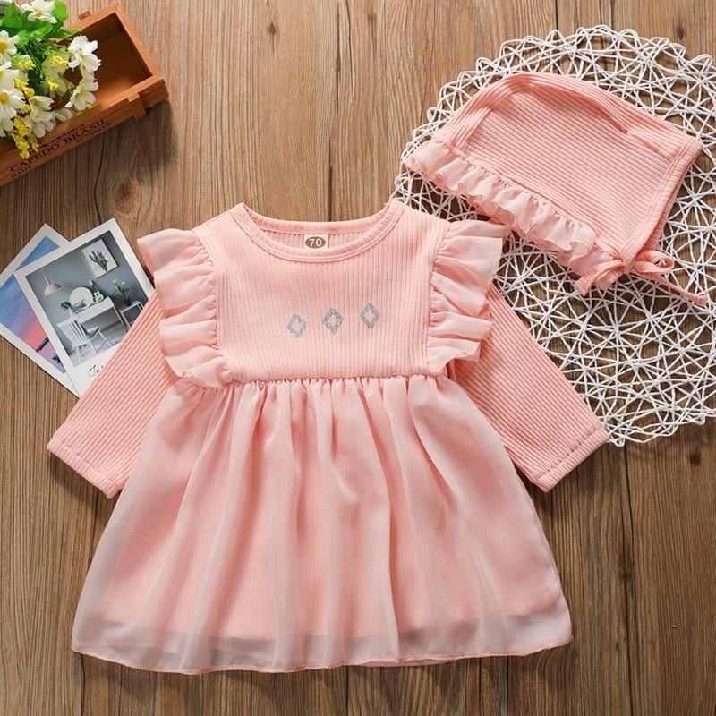 Vestido com Chapéu e Babados - Tamanhos de 3 meses a 2 anos
