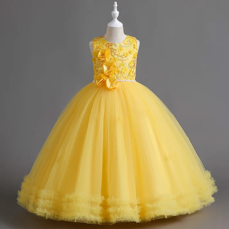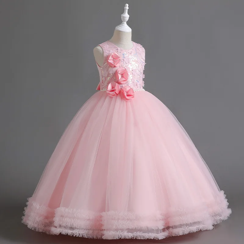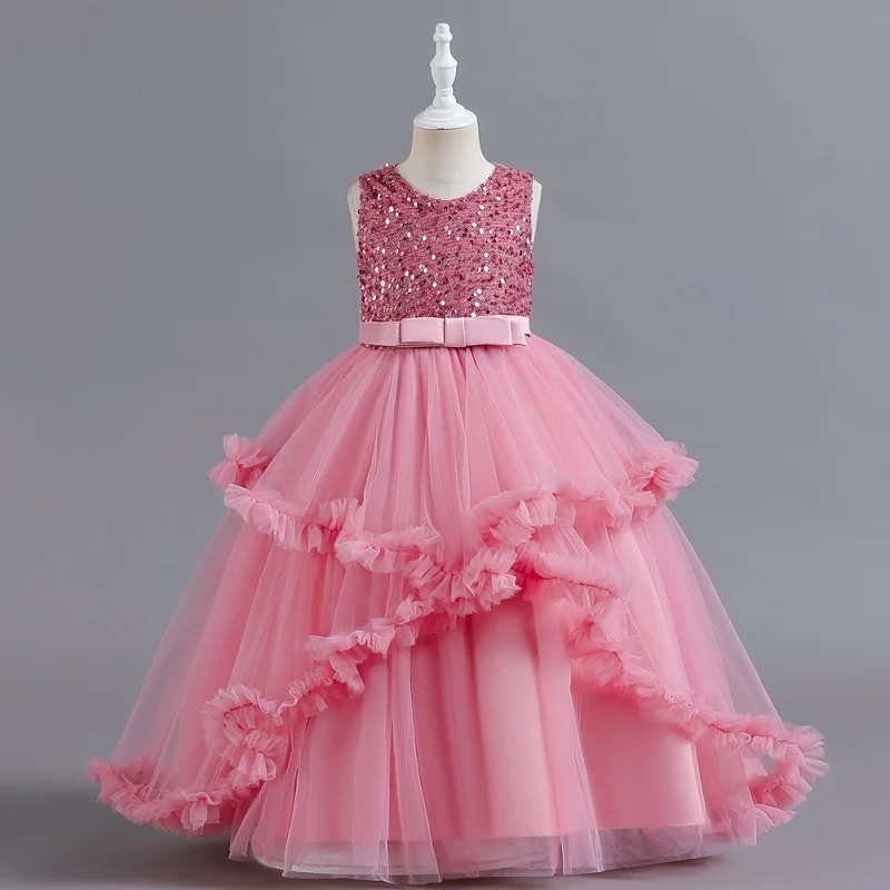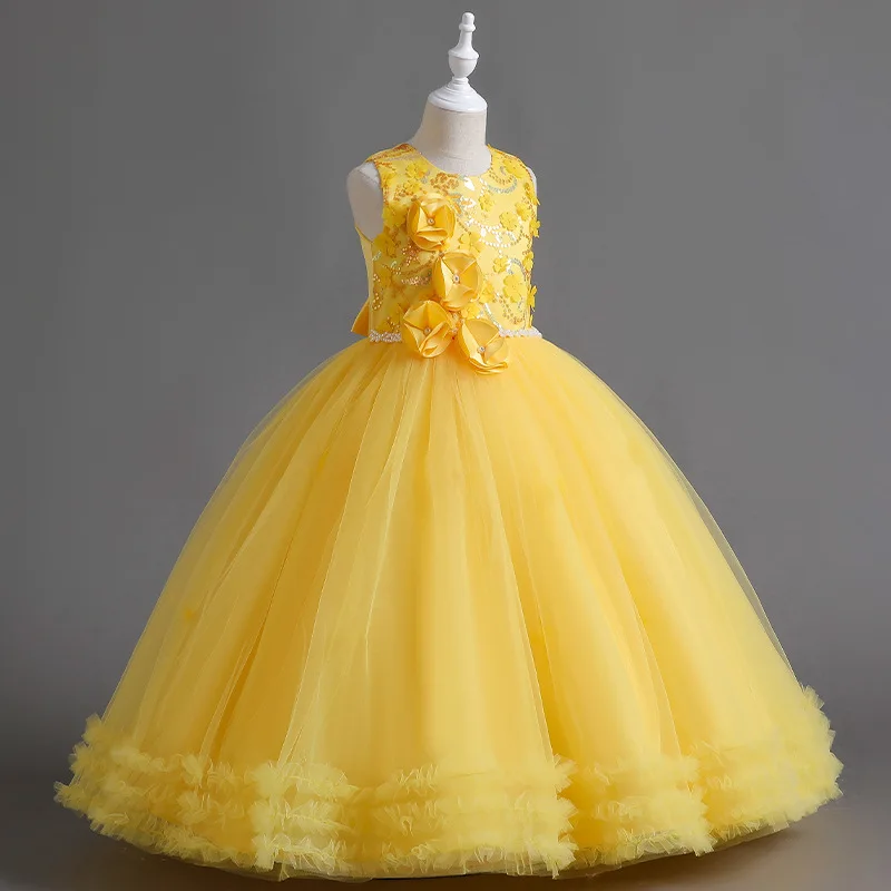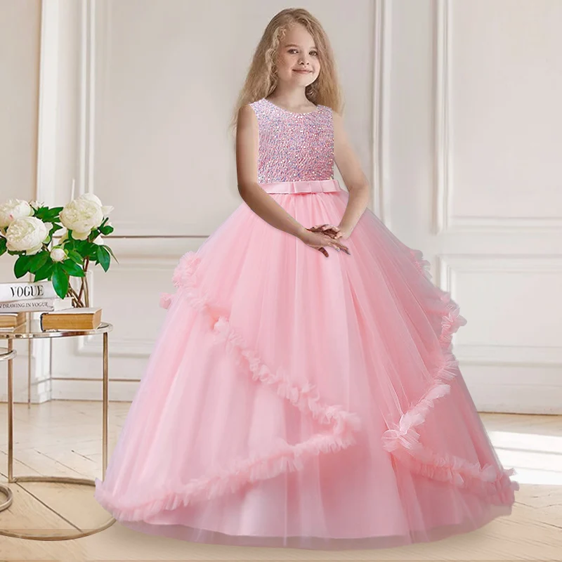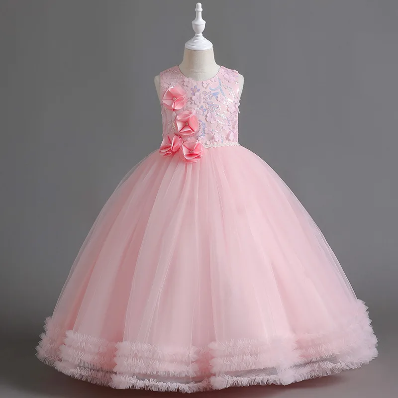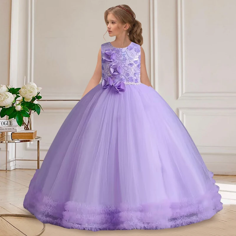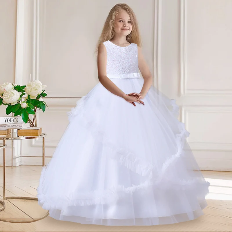 Primeira festa vestido de princesa Adolescentes Partido prom Casamento Flower Girl Dress para Crianças Meninas elegante Pageant mangas vestido longo Formal |