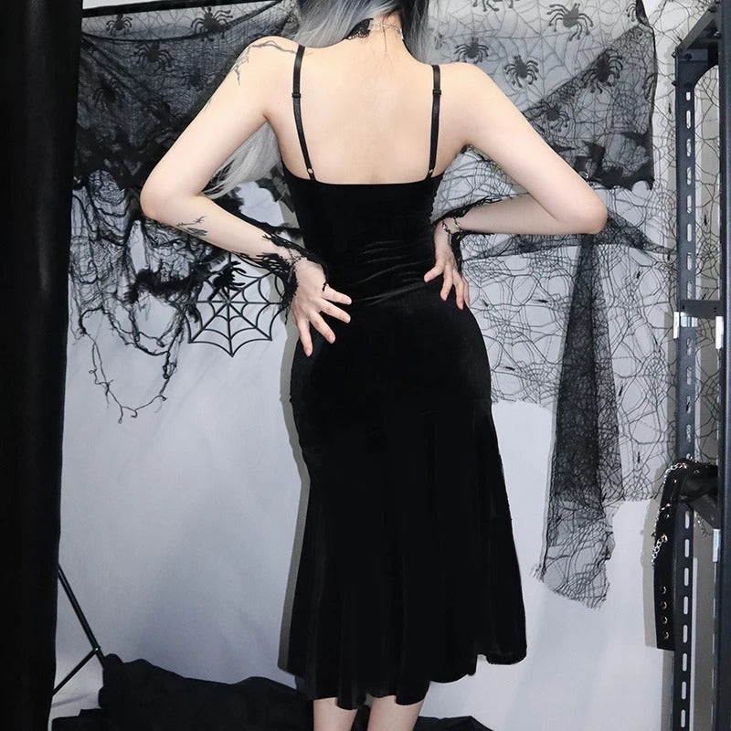 Elegante, sedutor e irresistível - este Vestido Longo de Veludo sem Costas é a escolha perfeita para a mulher que busca destacar sua feminilidade com um toque de estilo gótico. Com uma silhueta Fit and Flare que abraça suas curvas de forma sutil, este vestido oferece um visual deslumbrante que certamente fará você se destacar em qualquer ocasião. 🖤