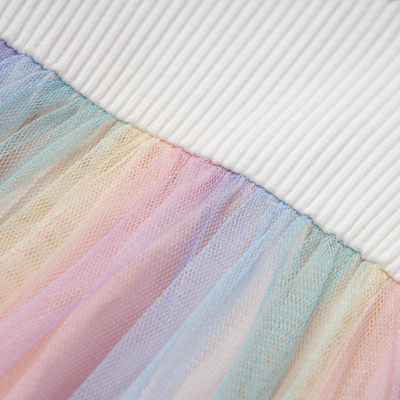 Vestido Manga Longa Saia Tule Colorido - Tamanhos de 1 a 6 anos