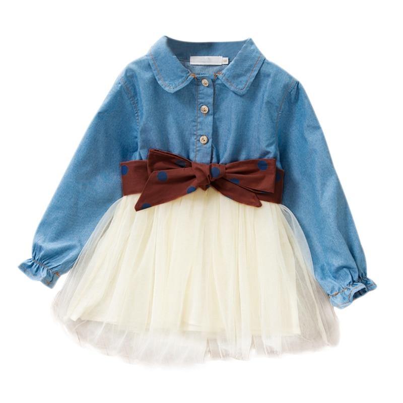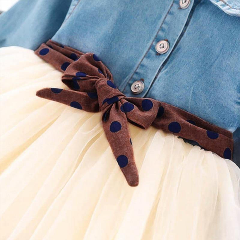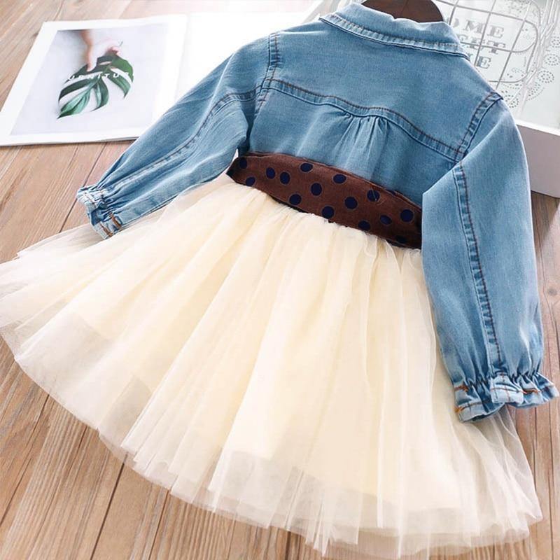 Vestido Tule Jeans e Laço - Tamanhos de 1 a 6 anos
